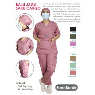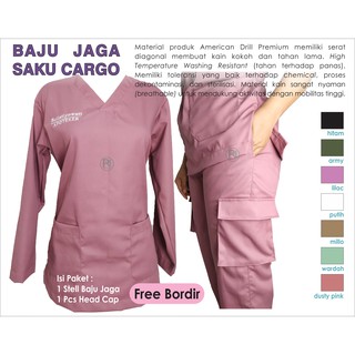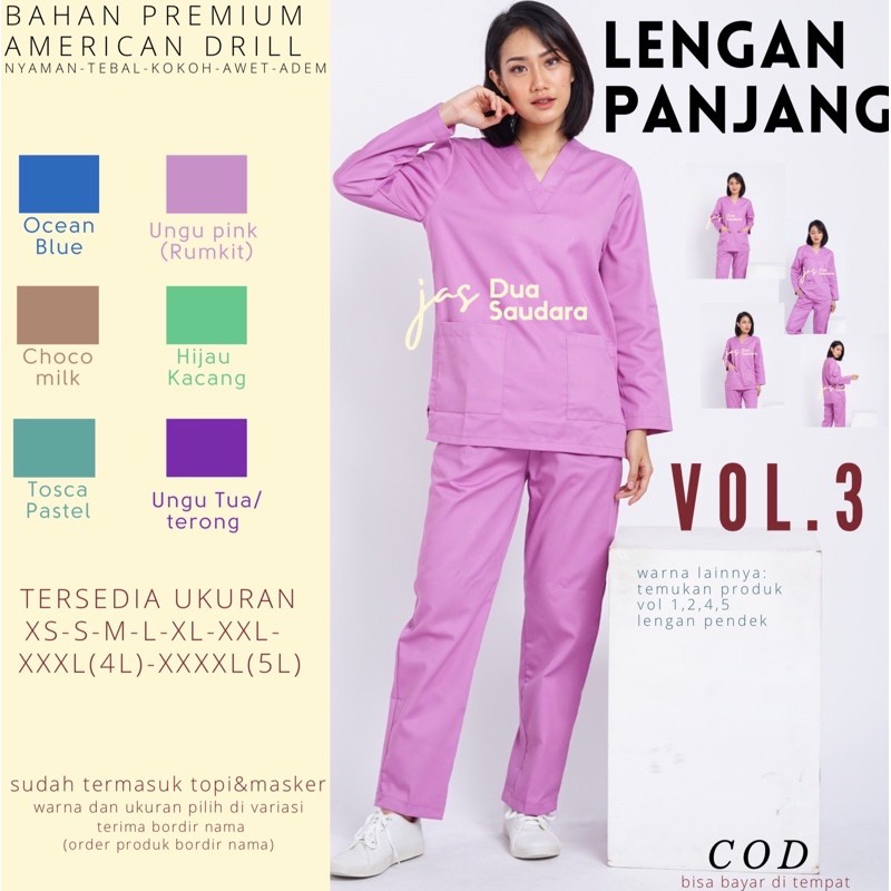 Baju Ok Scrub Lengan Panjang Amerikan Drill - Satu set topi dan masker. Baju Gamis Couple Brukat. Baju Celana Topi Masker Ready.