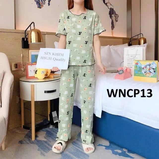 Piyama Wanita Baju Tidur Wanita Lengan Pendek Celana Panjang Import Shopee Indonesia