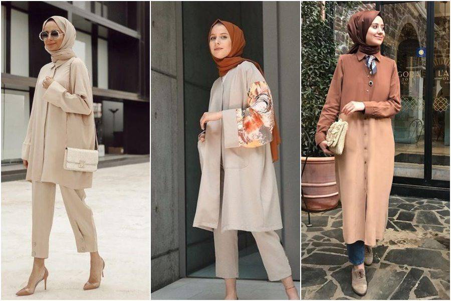 Tampil senada dengan baju warna cokelat. Contohnya padu padan warna baju yang menggunakan kombinasi warna merah biru dan hijau. Warna baju cream cocok digunakan dengan warna jilbab putih atau yang lebih terang agar menyesuaikan dengan warna baju cream.